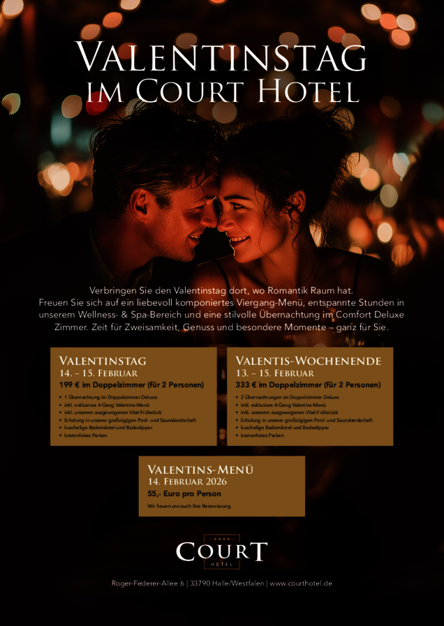 - Inkl. exklusives 4-Gang Valentins-Menü